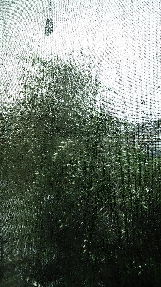 3枚目の写真は室内から窓越しに庭を撮ったものでわかりにくいとは思いますが、我が家の周辺は暴風圏内には入っていないものの、木がゆさゆさと揺れ、電線がピューピューと鳴るなど強風が吹いており、雨も窓をたたきつけています。