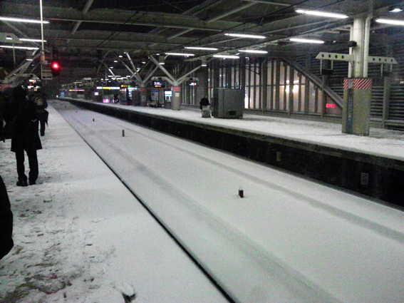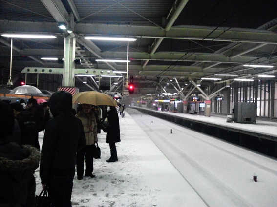 むちゃくちゃ暑い日が続くので、二月の大雪の時に電車を待つ駅のホームで