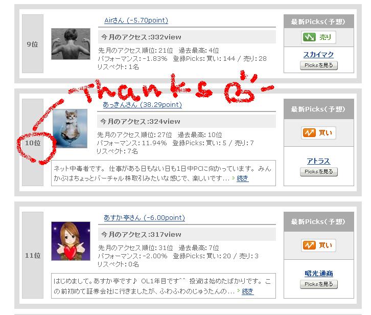 >今日見たら、10位にランキングされていました。