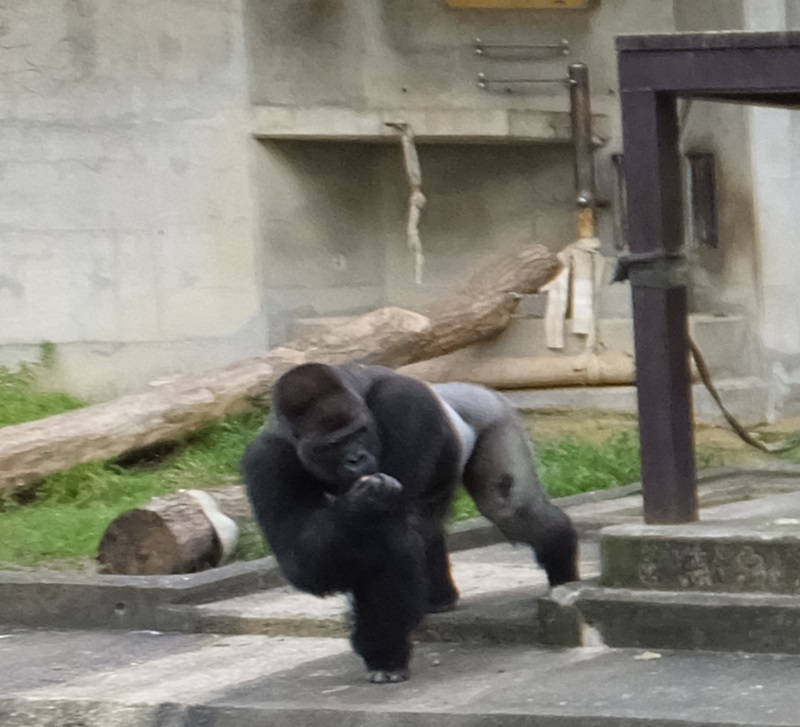 3時過ぎに行くと餌の時間、ゴリラも餌をもらって、オスと、メスは別々。