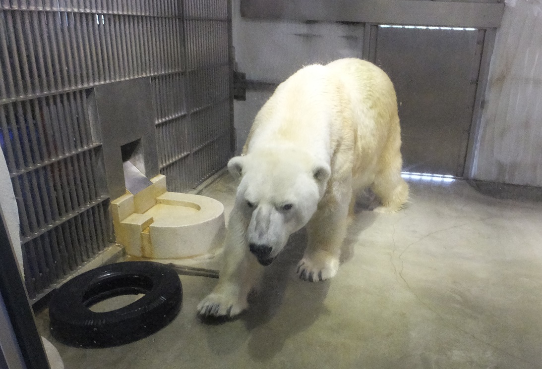 一日中水に浸かって冷やしてるので、白熊さんは青クマになる。