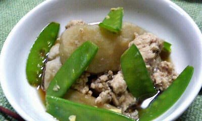 あっ先に作った、サトイモ・鶏肉・キヌササの煮物がコンバンワのオカズでつ♪