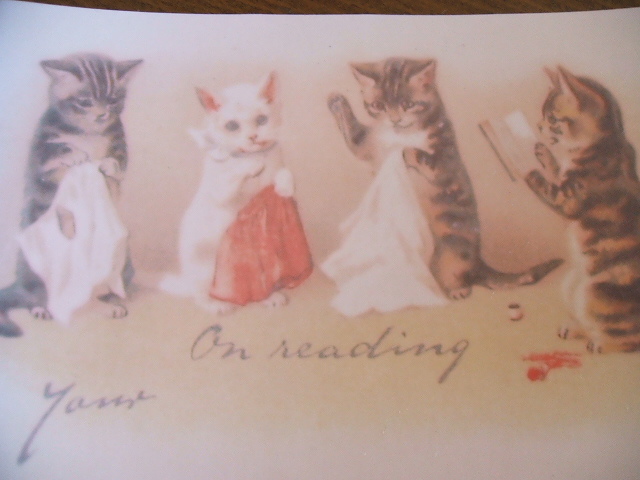 さて、今日の猫ちゃんも絵葉書。昨日の絵葉書と同じ方に頂きました。編み物、縫い物、働き者の猫ちゃんたちです。
