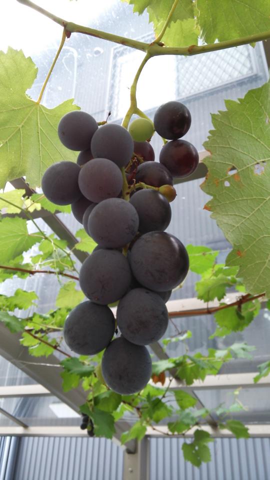 写真のとおり、ブドウ園のようにはきれいな形の房にはなっていませんが、去年よりもたくさん実をつけてくれました。