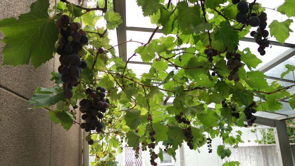 今年は伸びるまま、実がなるままにしておきましたが、来年は剪定をするなどしてもっとおいしいブドウがなるようにしていきたいと思っています。