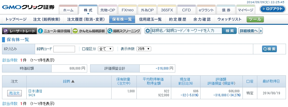 ポンツーは半額キャンペーン。大損中です・・・ さてさて、今日の日本通信(9424)も値を下げてしまいました・・・。