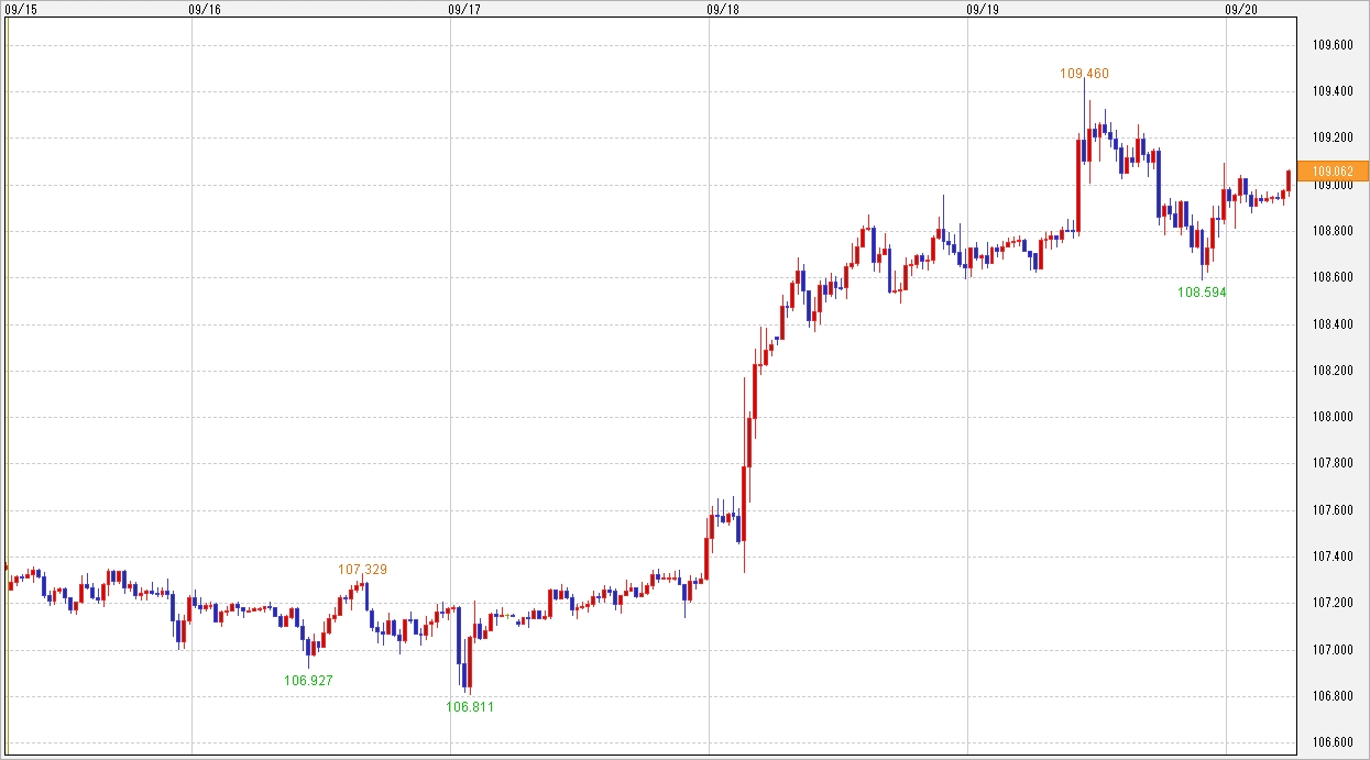 さらに、スコットランド独立の賛否を問う住民投票で、反対派が上回ってイギリスの分裂が回避されてリスクオフムードが一掃となり、円売りポンド買いの流れから円売りが波及して一気に109円台という流れでした。