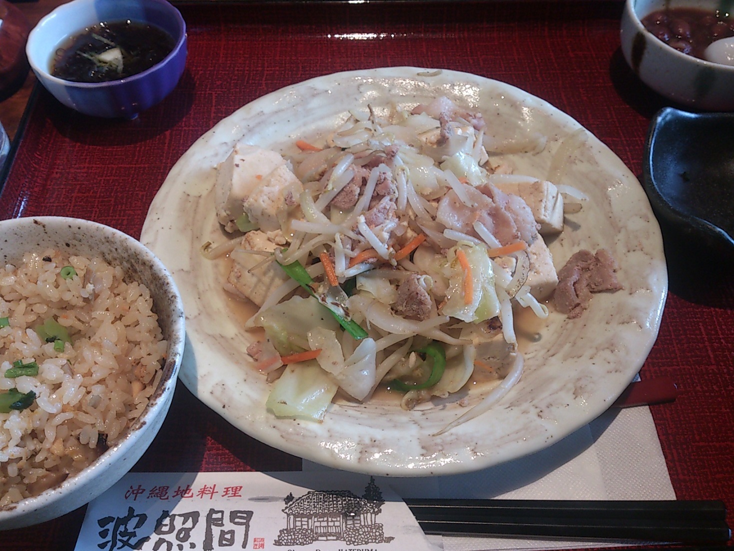 ・奥様と買い物に出て、昼に食べた沖縄料理を満腹になるまで堪能。≠( ̄~ ̄ )モグモグ