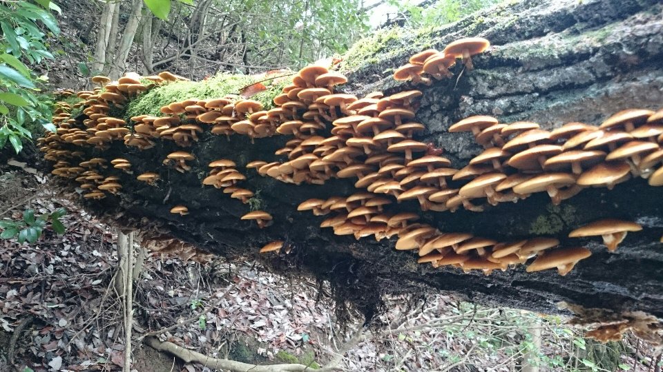 ここでも喜んで収穫し、川に沿って歩くとナラタケも発見し収穫^^