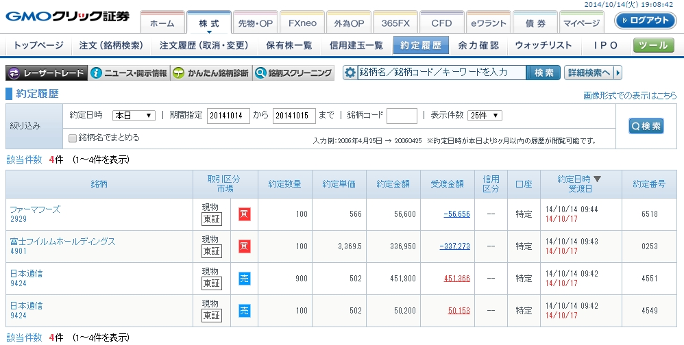 でもでも、今日もついついエボラ関連銘柄を買ってしまったんですね。しかも、その他にも今日のストップ高銘柄であるファーマフーズ(2929)を買うことにも成功しています(ΦωΦ)フフフ…