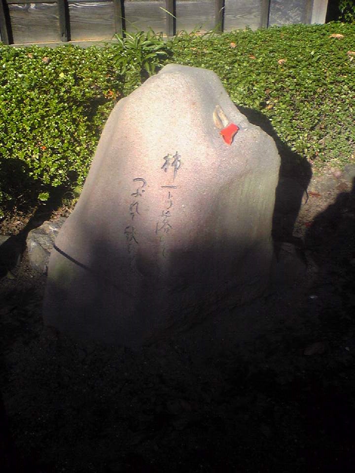 たずぬれば 句碑の頭に 熟柿落つ 弥