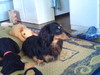クゥタはママと、台所でシャンプーです。ママのアレルギーのシャンプーとアトピーによいという人間用のコラージュというシリーズのリンスで、、ねっとりしっとり、、