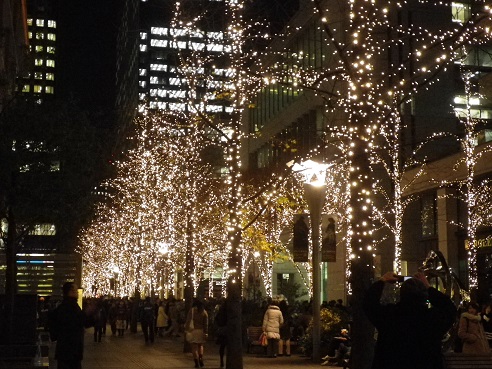 駅から皇居に向かう広い通りにもイルミネーションがあったのですが、適当な出口から上がったら一方通行とかでたどり着けず、今回はパスしました。