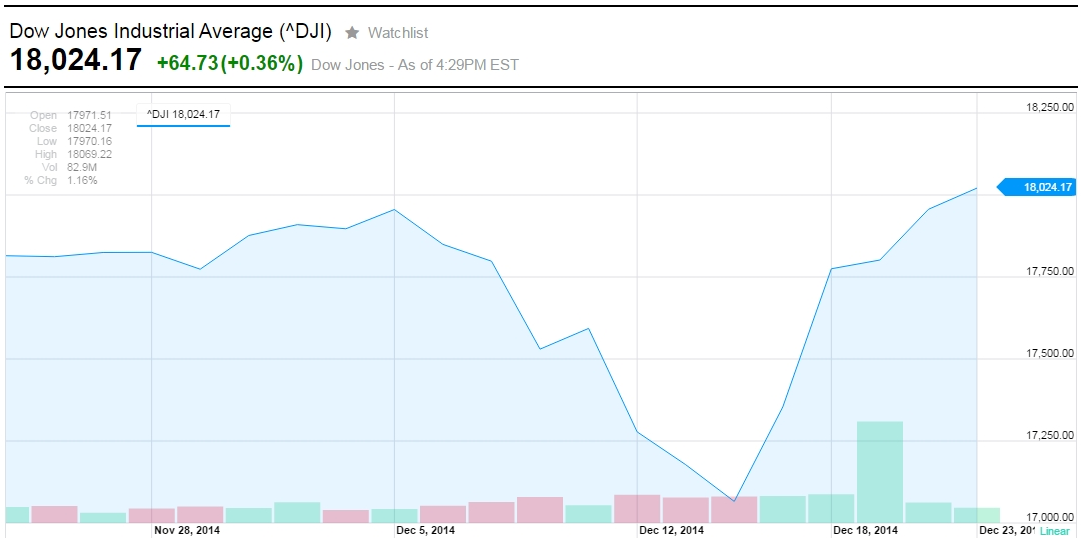もはや、来年2015年の覇権も確定したといった勢いで、ドル買いに傾いたほか、NYダウ平均株価は史上初の18,000ドル台に突入しています。