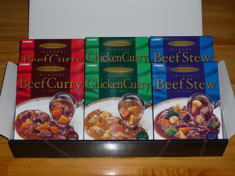 写真は3000円分自社製品のセットですが、今回は株主優待限定カレー&シチューギフトセットで個別のパッケージにもちゃんと『株主優待限定』の文字が入ってます(^^)