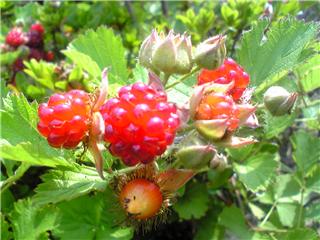 野いちごが美味しそうに生っていました。少しすっぱいですがなつかしい味です。山に行くとこれが沢山あって食べたことを思い出します。もっと熟すまで鳥は食べません。すごく敏感です。