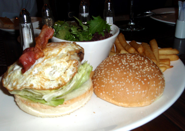 メタボバーガー(?)は、メニューになかったのですが「ハンバーガー食べたいっ!」って頼んだら「OK,OK、スペシャルなヤツを作ってやるよ、ワッハッハッ!」って、お店の人が言って作ってくれました。なんだか、外国ってやっぱり楽しい♪
