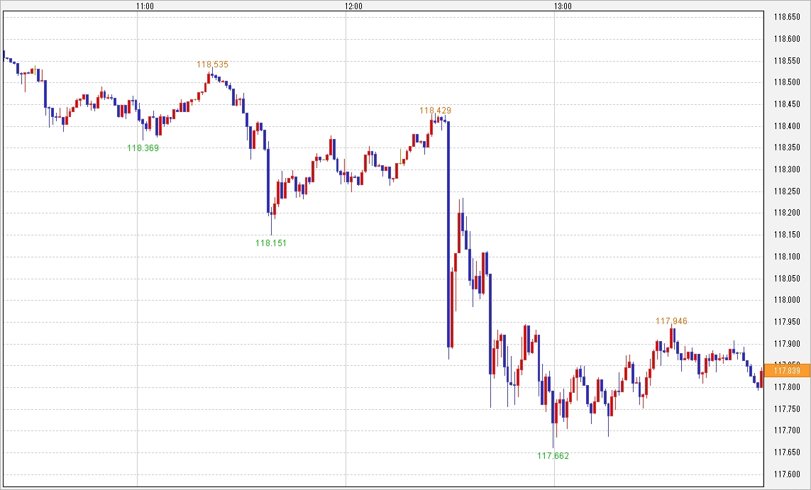先ほど発表された日銀の金融政策決定会合の中身については、やはり現状維持判断となりましたね。一部報道では日銀が付利(金融機関が日銀に保有している当座預金への金利)引き下げるといった報道もあったためか、ドルが大幅に買われて119円に迫る勢いで上値を伸ばしていましたが、結局は反落してしまっていますφ(゚0゚*)ホォホォ