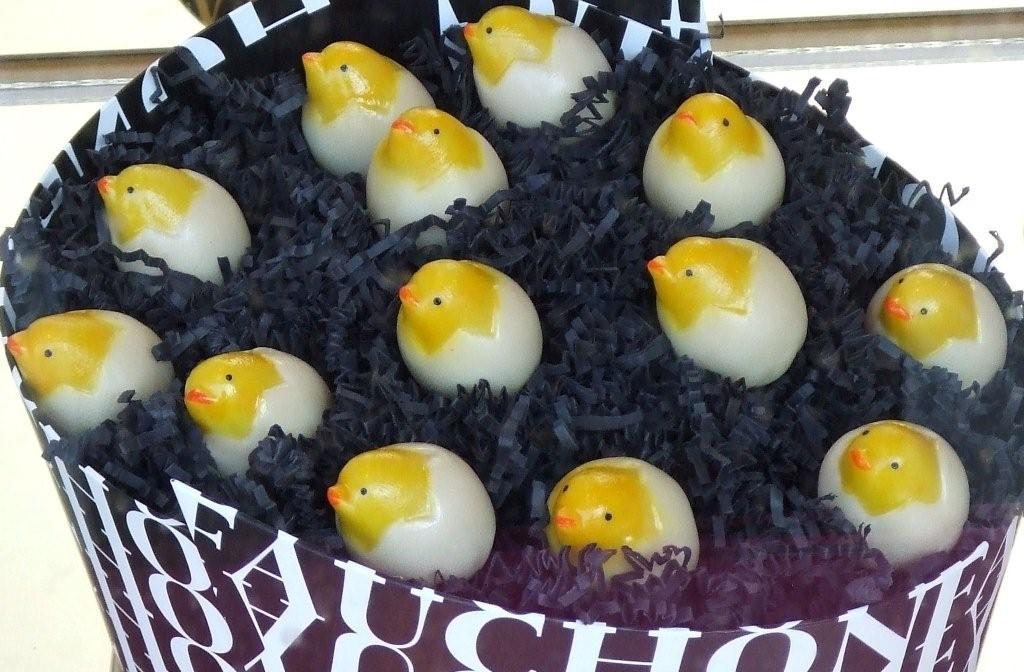お店のショーケースにはひよこがあしらわれていた飾りが。