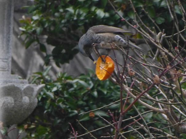 メジロも今年は来なくなり、ヒヨドリばかりです。