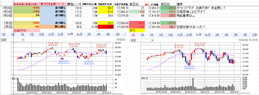 そして日経。ダウを無視して踏ん張ってたけど 今日は反対に。