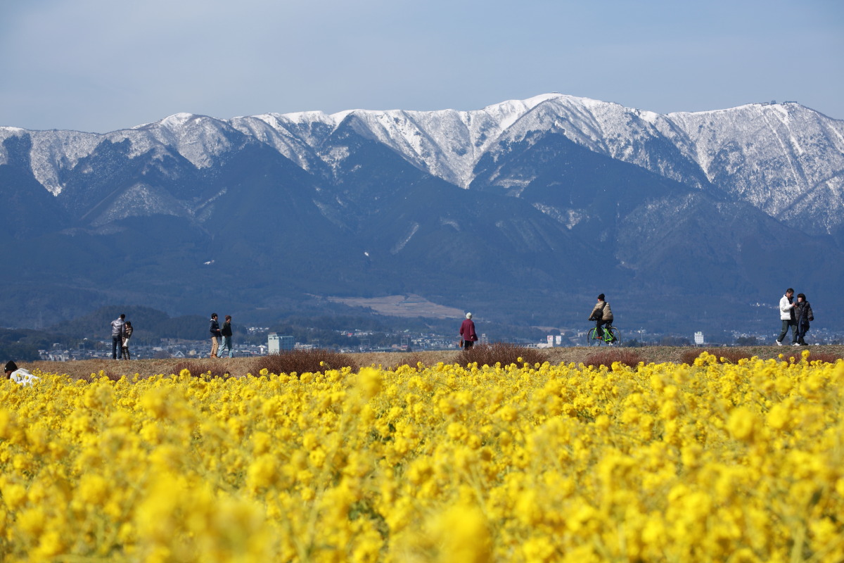 雪山と菜の花のコラボ