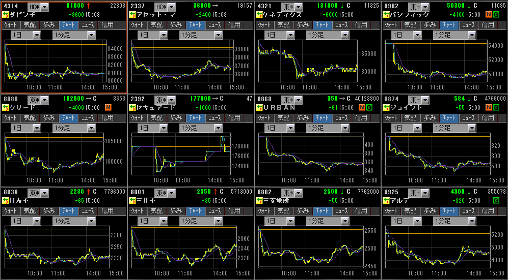 今日は、新興市場できく下げている銘柄がちらほらありました。以前の日記で何回か書いたゼンテックもストップ安。ここは、いずれ株価1万円を割れてくると思うけど、思ったよりも早くその時がきそう。日本の新興市場は、とりあえずふざけた上場ゴール企業が多すぎます。業績がまともなのもいくつかあるけど、そういうのはたいていバリュエーション面で魅力がない。業績が順調に伸びていてPEGレシオが1倍以下なら、事業内容等を見て検討するに値すると思いますが。