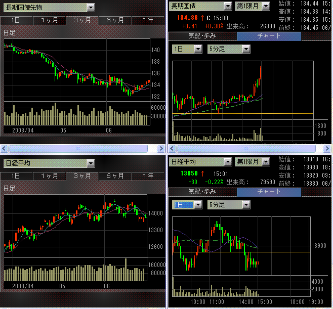 こんばんは。NY市場は、相変わらず原油と金融が懸念となっているようですね。ダウは、とうとう3月安値を割れてしまいました。日本は、ドル円が落ち着いていれば一気には下がらないと思いますが、円高が同時に来るとまた急落しそうです。