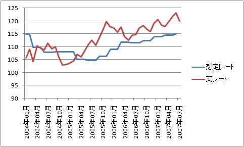 2007年6月の調査ではドル/円の想定レートが115.07円でした。