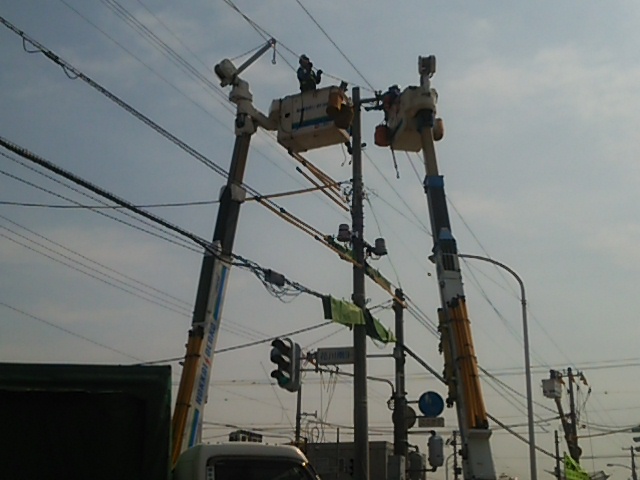 ちなみに、九州では台風対策で電信柱は無く、1本の電柱に電力線と電信線が段違いで両方架かっています。