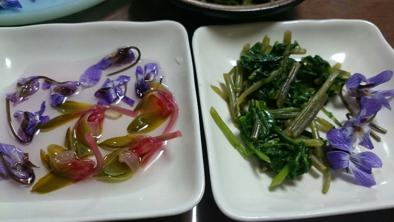 山の地味溢れる山菜や花の数々