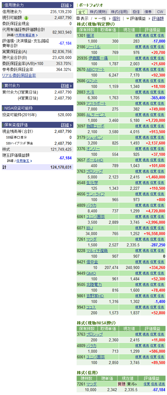 当初はそろそろ底かとおもったんだが,まだ買い残は増える方向だし,