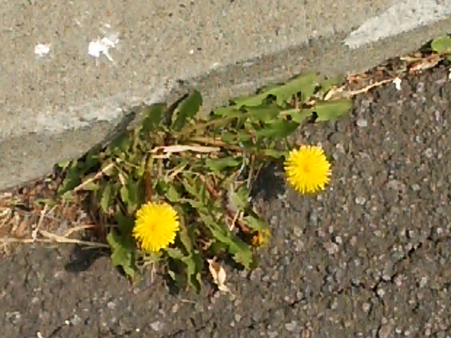 初タンポポも舗装の隙間に見つけた