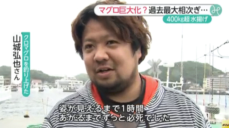 釣り上げた山城弘也さんは「うれしいの一言です。姿が見えるまで1時間、あがるまでずっと必死でした」と話した。