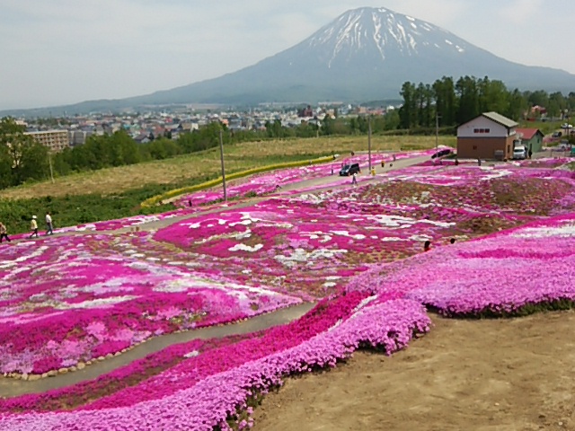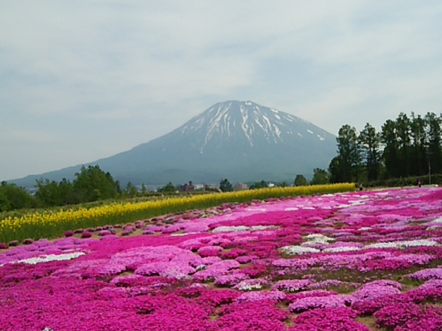 向かいにそびえる羊蹄山(蝦夷富士)が