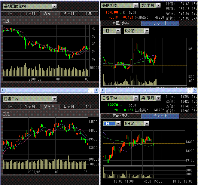 先週の外国人の売買動向は、東証、大証発表のデータに基づくと、現物が3000億円くらい売り越し、先物が、1300億円くらい売り越しでした。現物は、個人と国内年金が買ってますね。