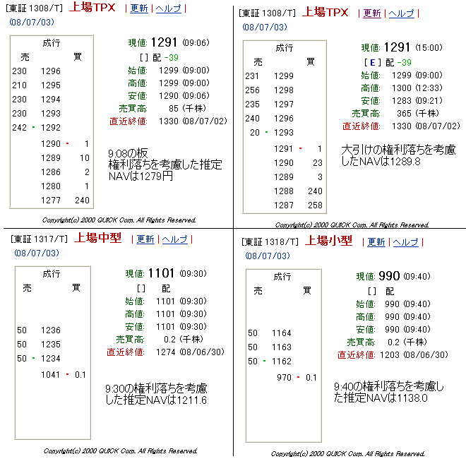 9:08の権利落ちを考慮した推定NAVは1279円。11円程度、0.8%のプレミアムです。
