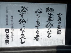寺の門の横にこんな標語がありました。一読して、「重荷を背負い諦念と畏敬にみちた駱駝では不十分で、精神の獅子になれ」というニーチェの言葉が脳裏に浮かびました。日蓮のことは知りませんが、どこかニーチェと通ずるところがあるように感じました。