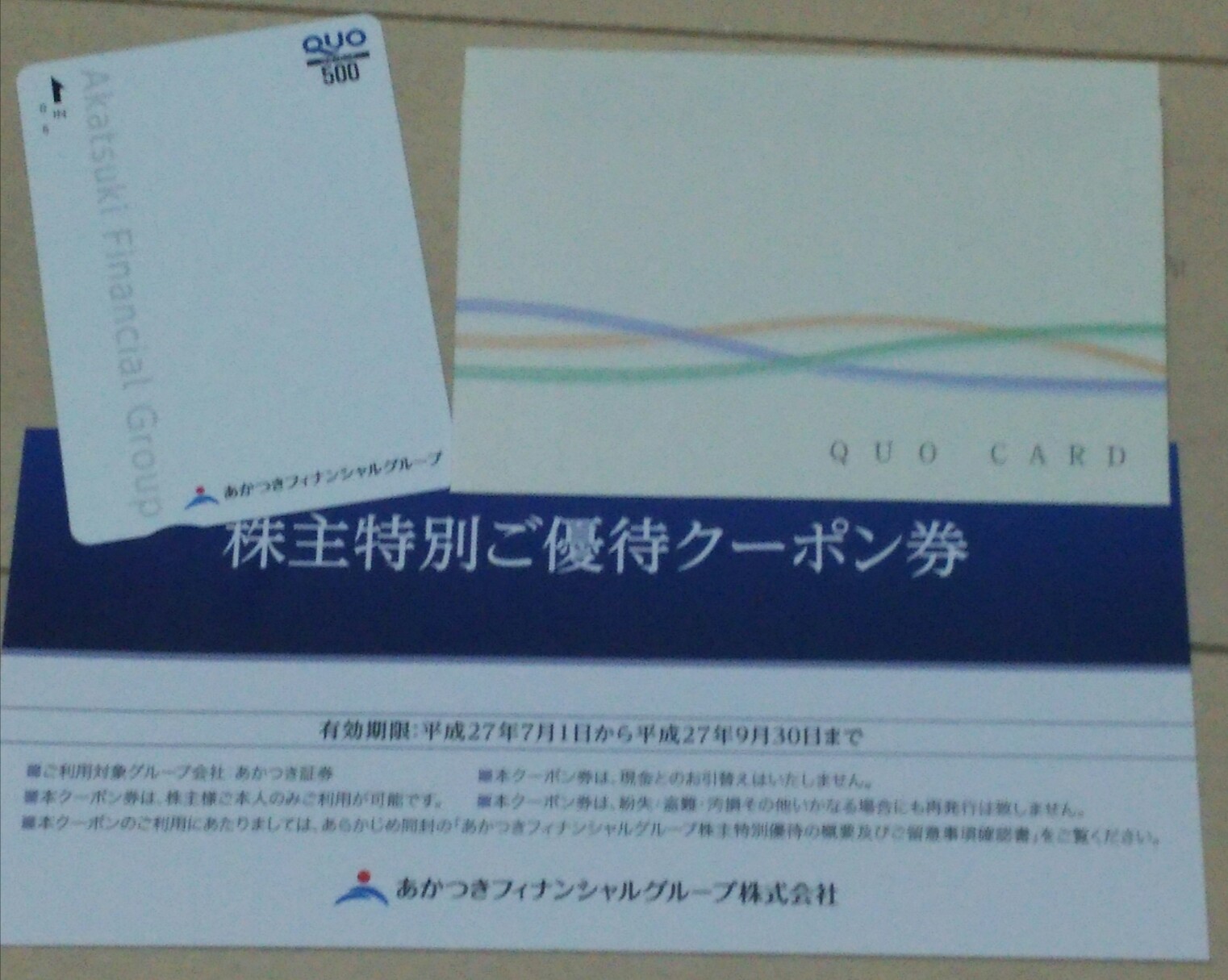 優待クオカが到着~(* ̄∇ ̄)ノ