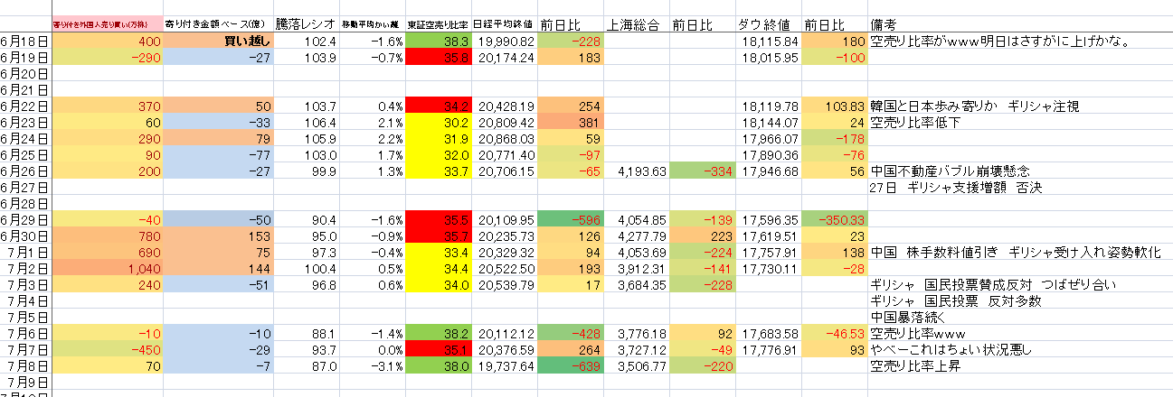 更新です。 またまた、空売り比率上昇 しかし先物下落 朝一チャンス?中国次第だね。