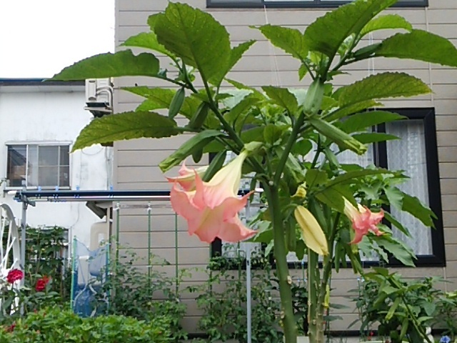 お隣にはエンジェルトランペットも咲き始めた