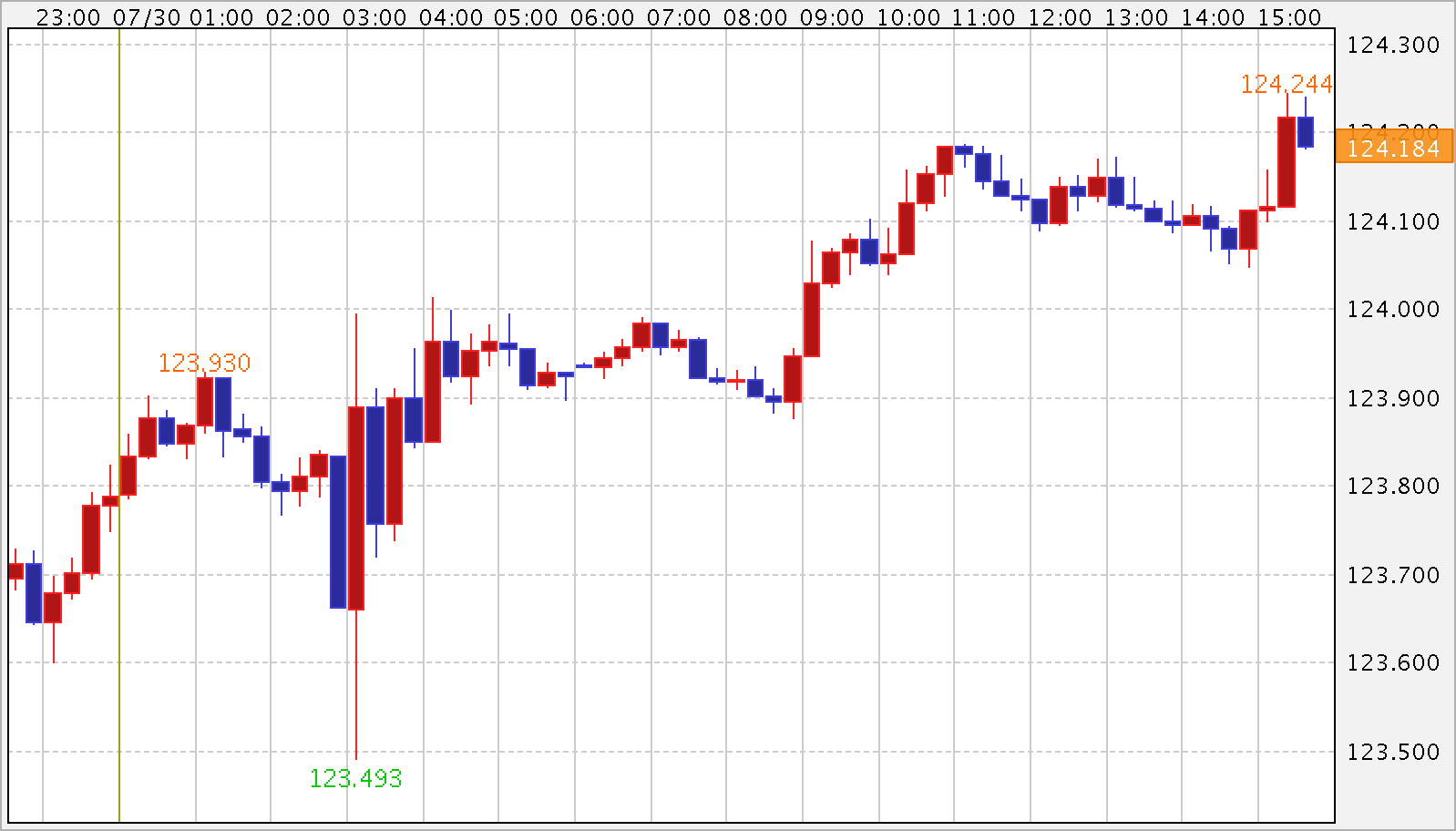 とりあえず、FOMCの声明内容については後々まとめていくとして、昨日今日の為替相場の流れを振り返っていくと、昨日(29日)の東京市場は、1ドル=123.30〜123.70円台での値動きとなりました。序盤こそ日経平均の下落を受けて安値圏まで落ち込みましたが、暴落の続いていた上海株が反発したことを受けて、ドル・円も徐々に上値を伸ばしました。