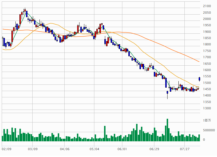 チャートを見ると数か月右肩下がりの後、移動平均線の5日が25日線をGクロス。