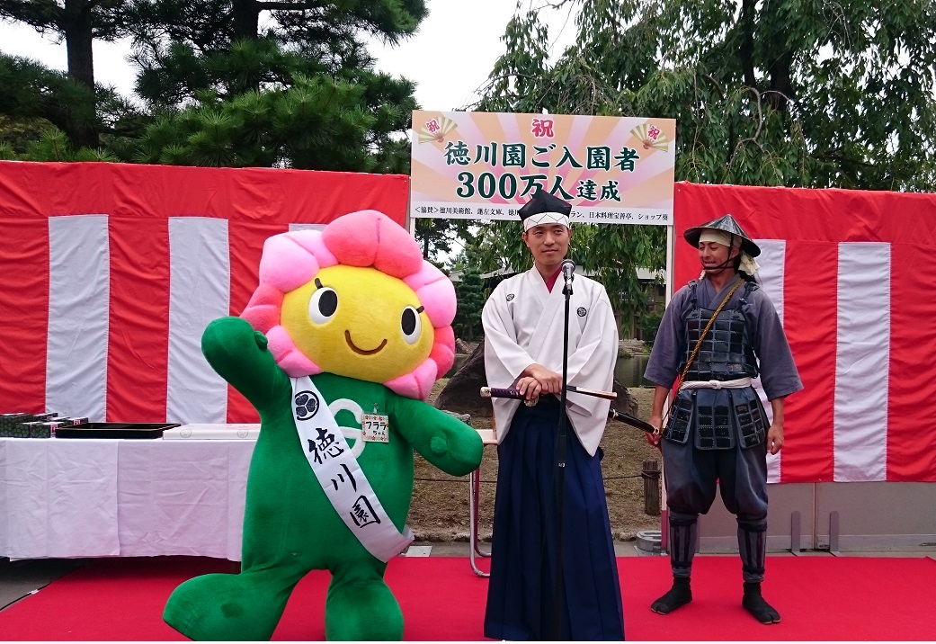 朝、徳川園にいったら、300万人のイベントが みなさん、記念グッズや、食事券もらってた。