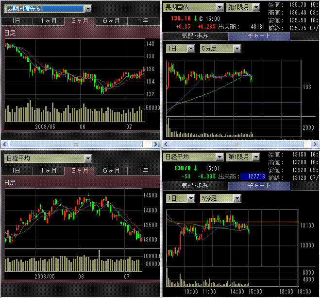 アメリカは日替わりでよく動きますね。商いが薄いので、短期筋のセンチメント次第で一方向に動きやすいのでしょう。日本も先物に振らされて、出来高も先物だけは多くて、よくやるなあと思います。