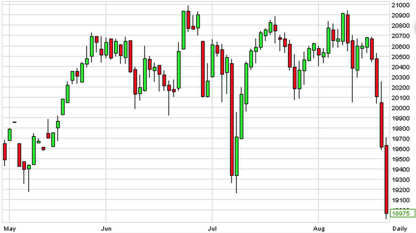昨夜のNYダウ平均株価の終値は前日比で−530.94ドルとなったほか、日経平均先物もこの煽りを受けて19,000円という大台を割り込んでしまっています↓