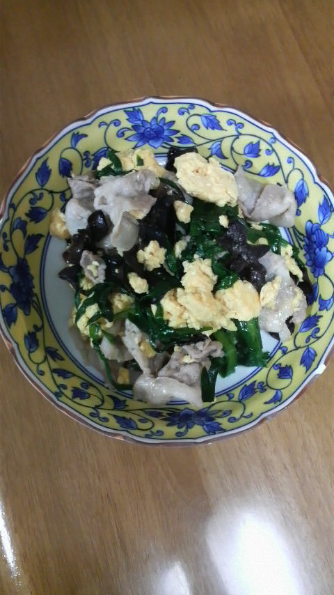 豚バラ肉をごま油で炒め、きくらげとニラ、卵をまぜあわせて味付けするという、至ってシンプルながら案外ごはんが進む料理でござる。(^^)