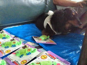 どうしてそういうことが起きるかといえば、私の誕生日に東京のタイガーマスクさん(まりなのふぁんのおじさん)がクゥタに毎年盲導犬協会からプレゼントをおくってくださって。![]()
