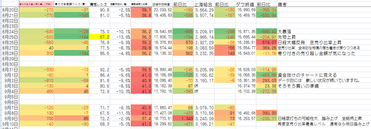 東証空売り残見ても盆明けから