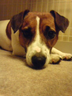 スーパーハイテンション犬のジャックラッセルテリアもさすがに近頃の暑さには少々まいっております。